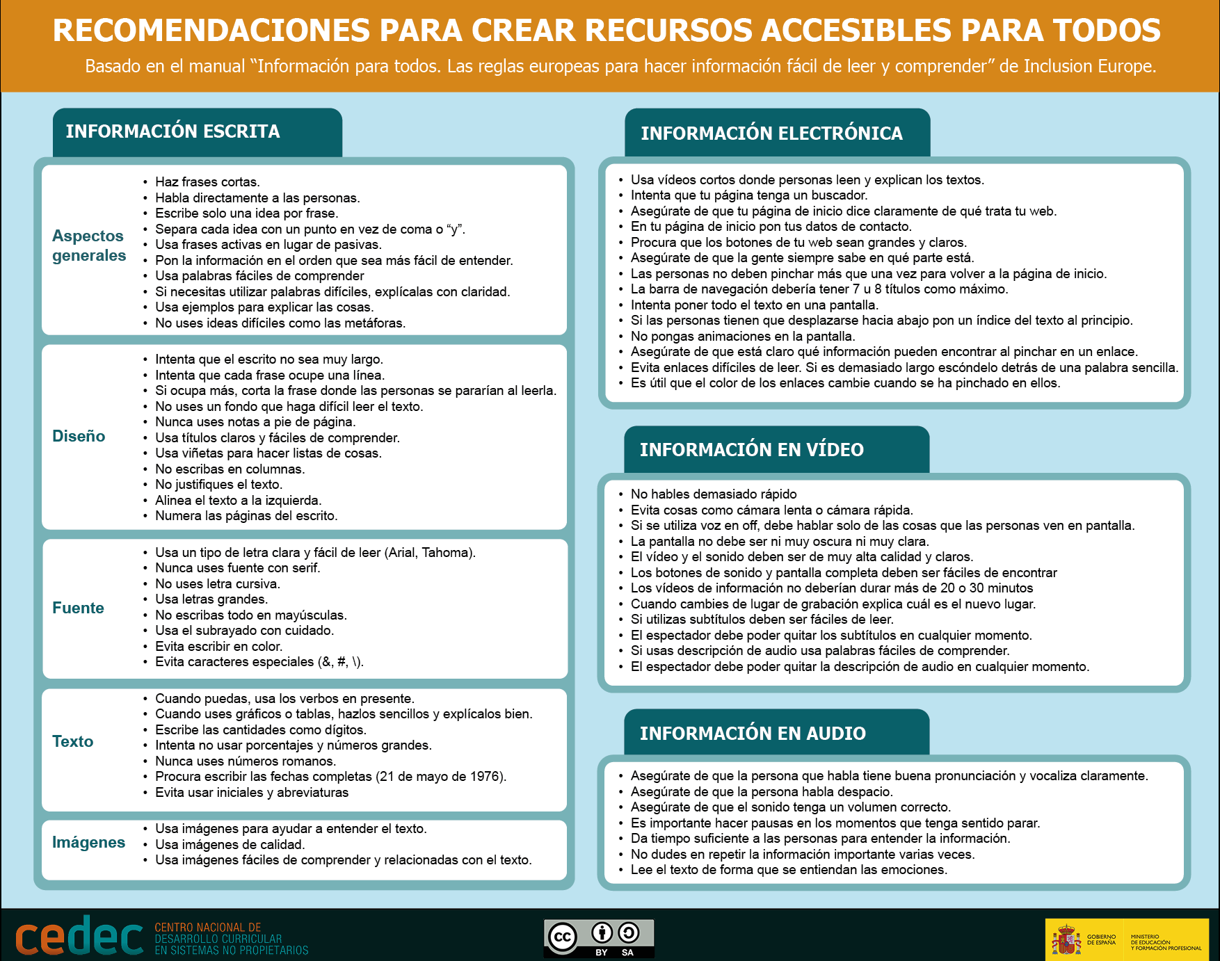 A la hora de configurar nuestras herramientas tendremos que tener en cuenta, en relación a la opción de comunicación deseada, el promover los principios de lectura fácil, acompañando (o empleando) un sistema alternativo y aumentativo de comunicación de ser necesario. Veamos a continuación una serie de recomendaciones que pueden extrapolarse fácilmente a procesos de comunicación.