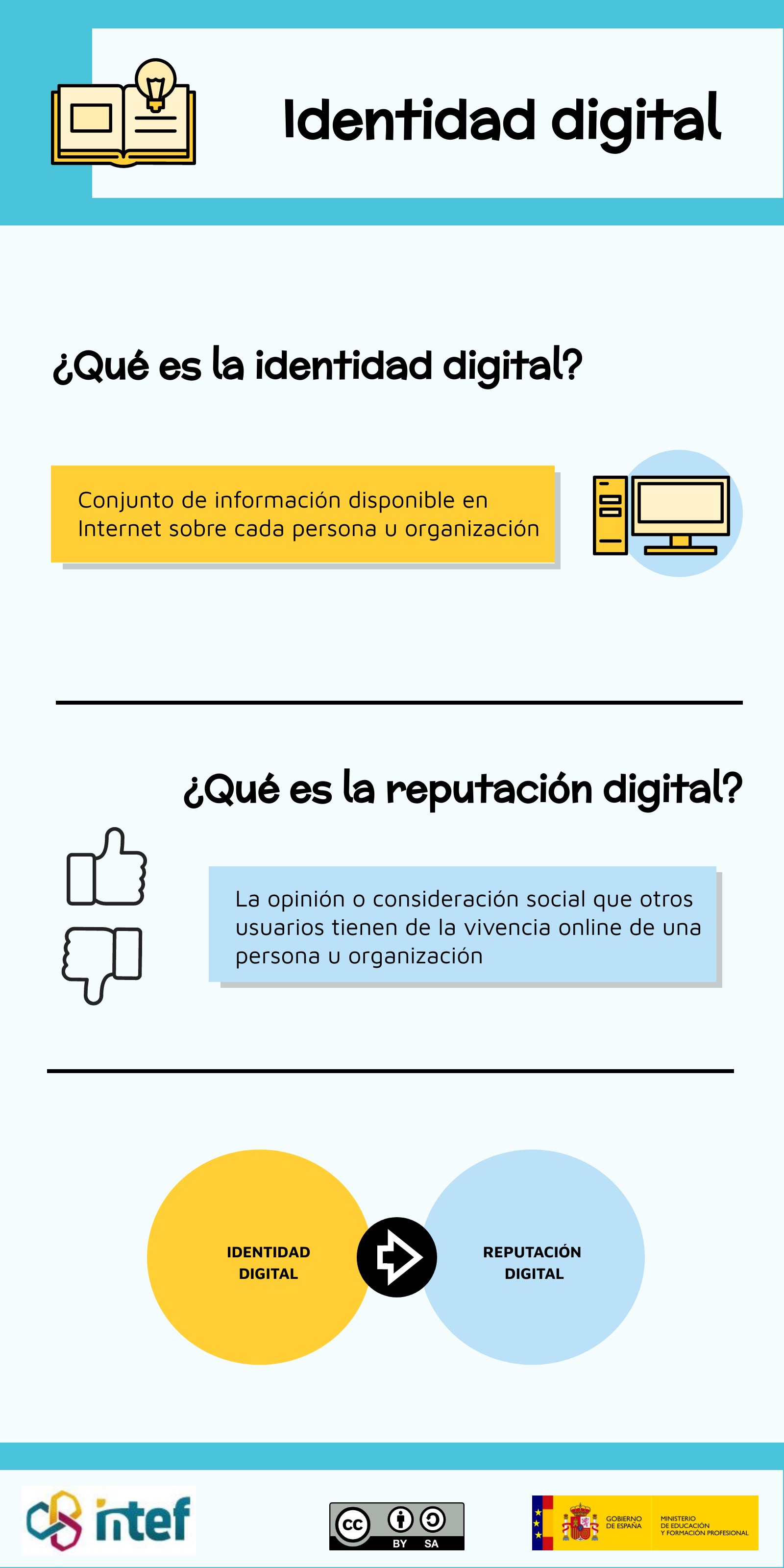 La reputación digital es lo que otros piensan respecto a esa identidad y puede ser positiva o negativa, en función de los valores que transmite a la sociedad. Es un concepto abstracto referido a la percepción que se tiene de las personas u organizaciones.